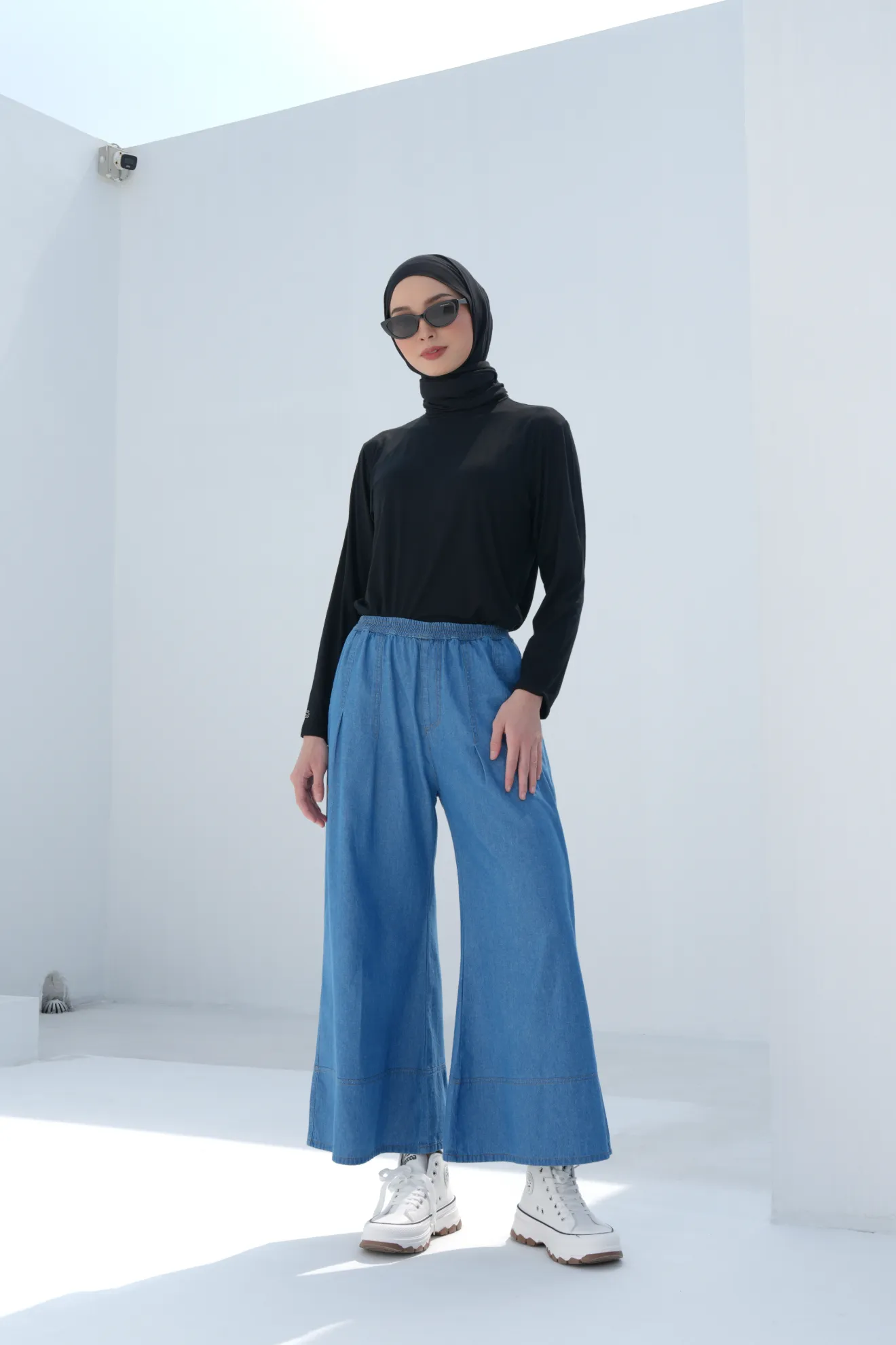 Potongan melebar dan siluet kulot yang jatuh menjuntai bikin kaki terlihat lebih jenjang. Elastic waistband-nya sangat fleksibel, mudah dipakai, dan nyaman untuk mobilitas padat sepanjang hari.