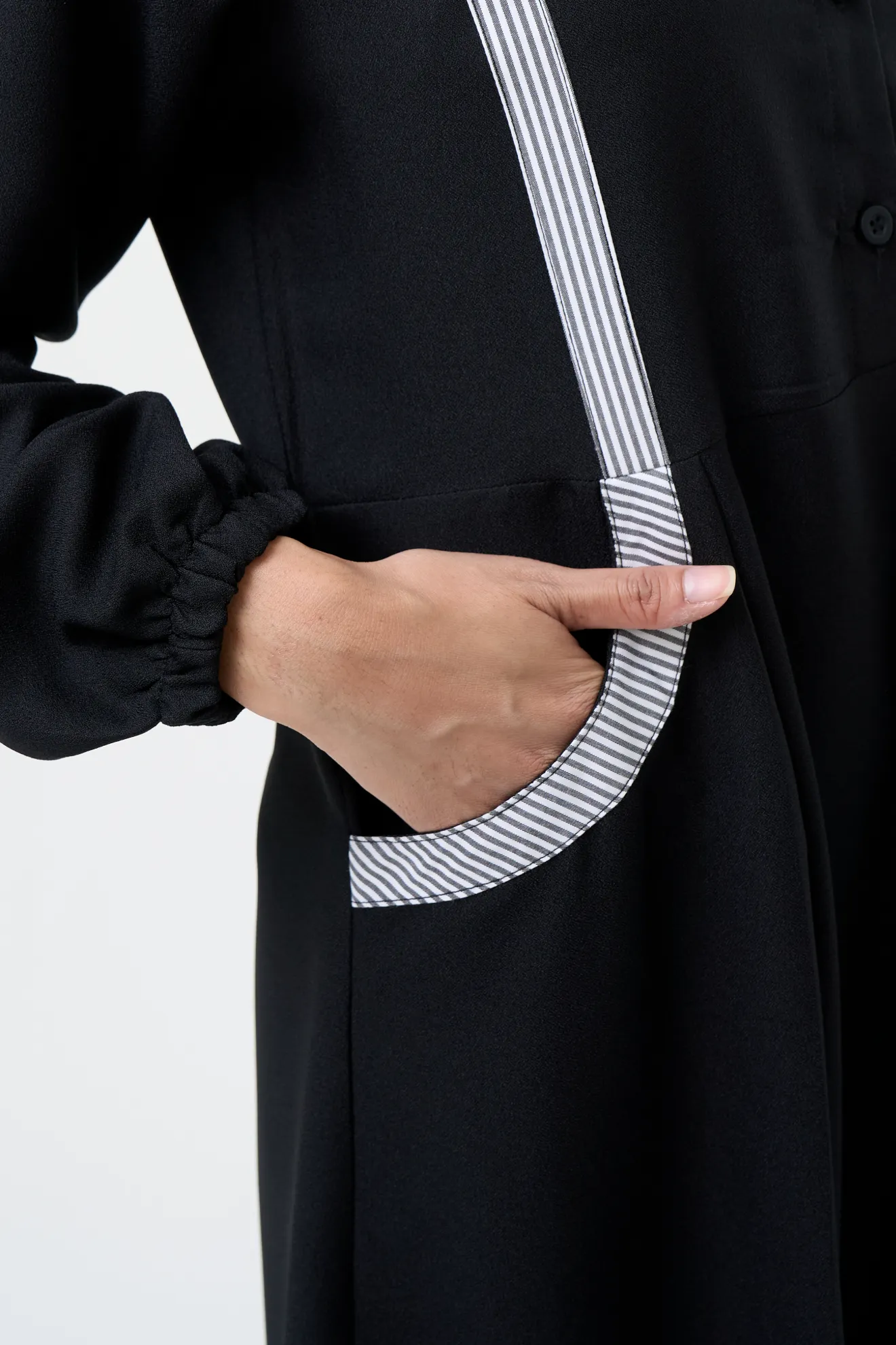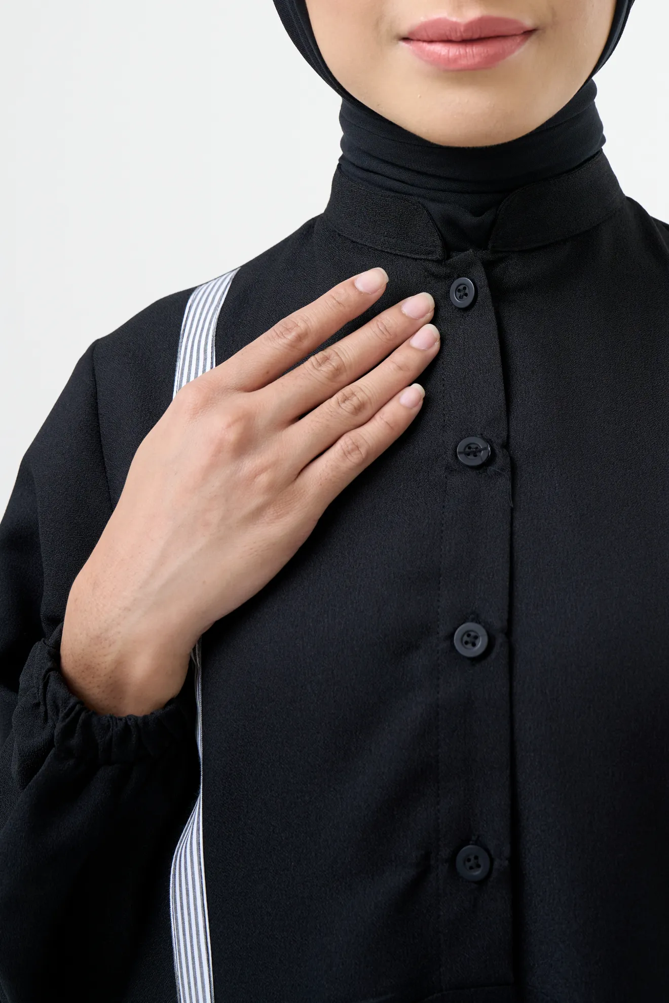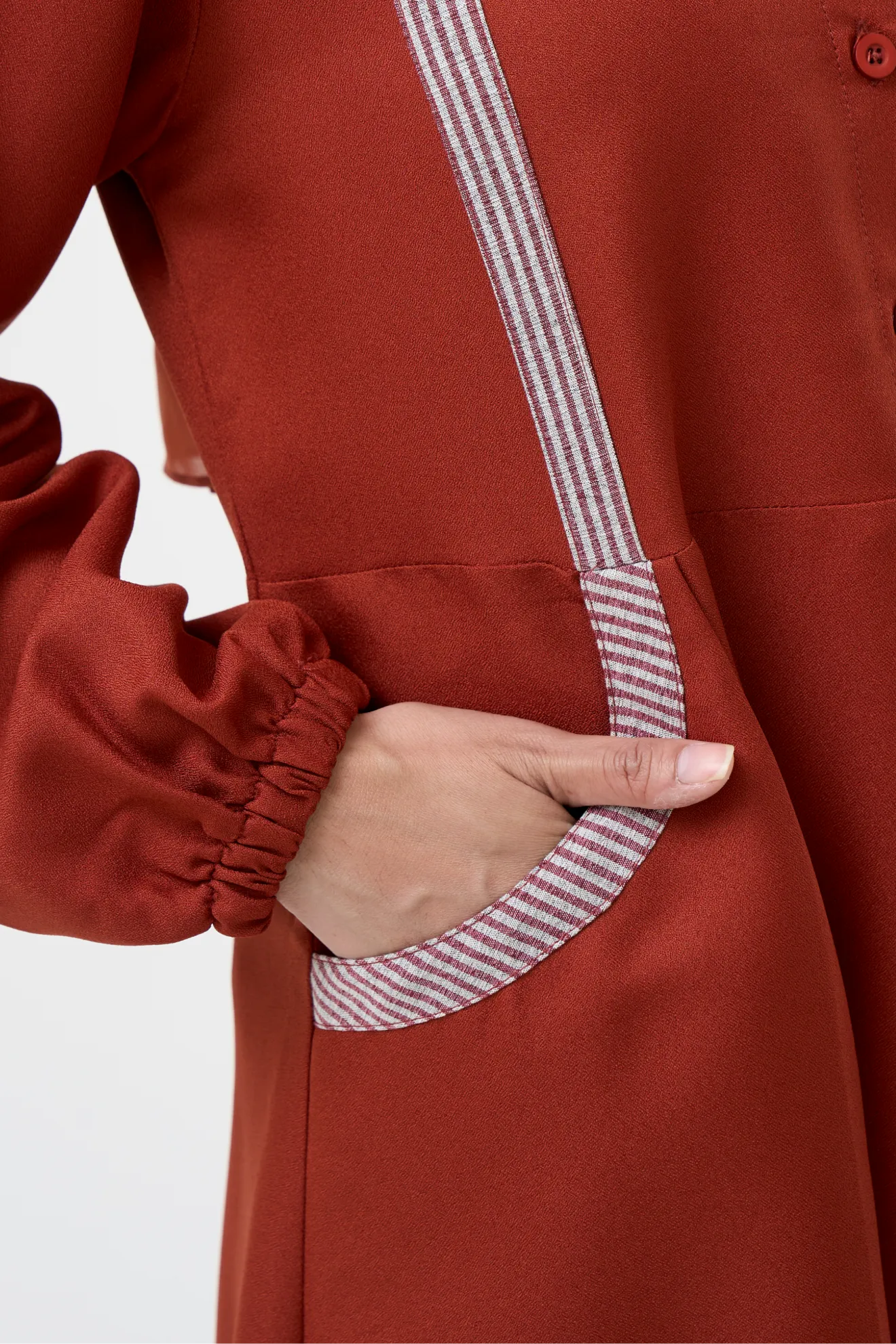Kerah ShanghaiKancing Bukaan Depan Variasi Motif Salur Saku Depan