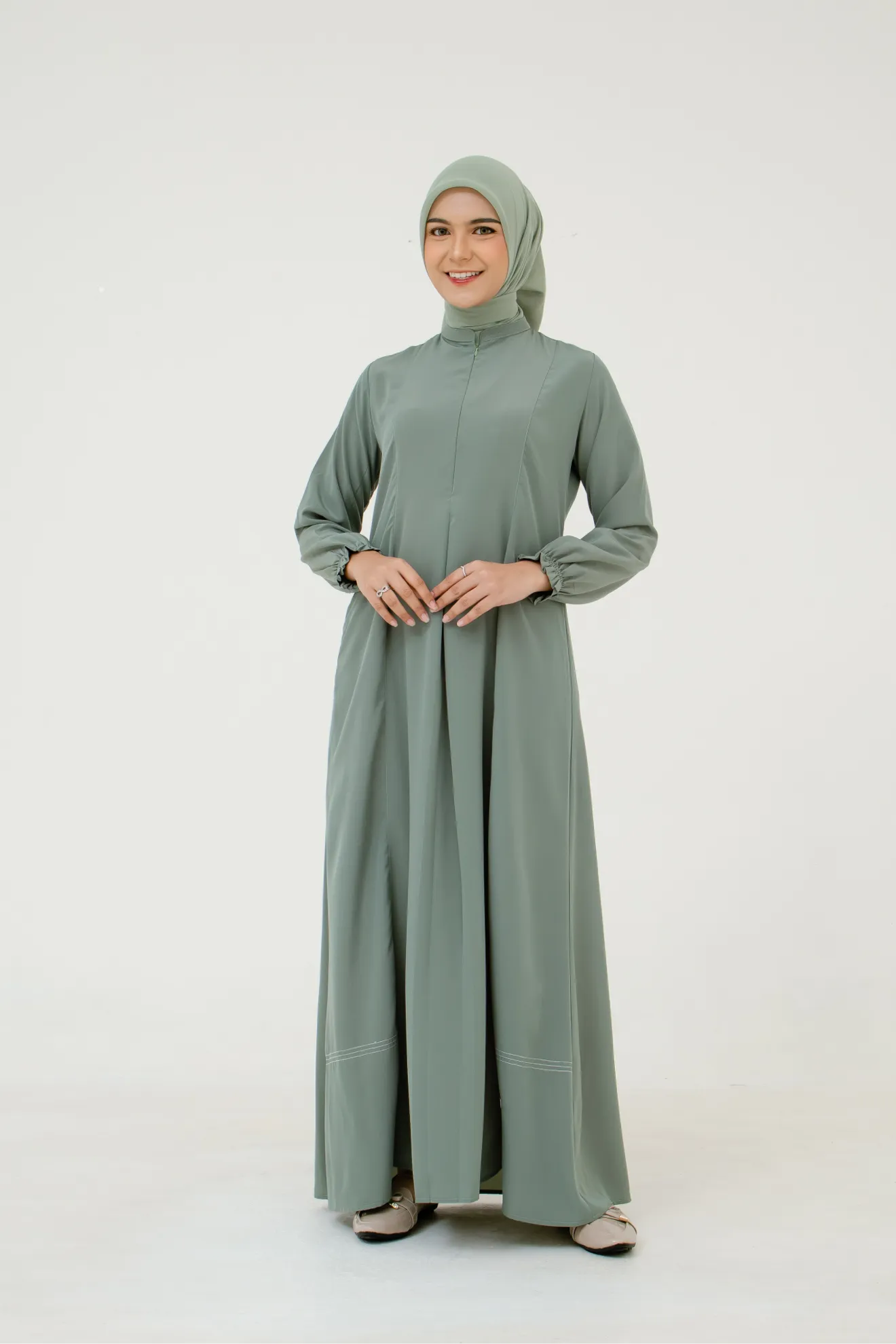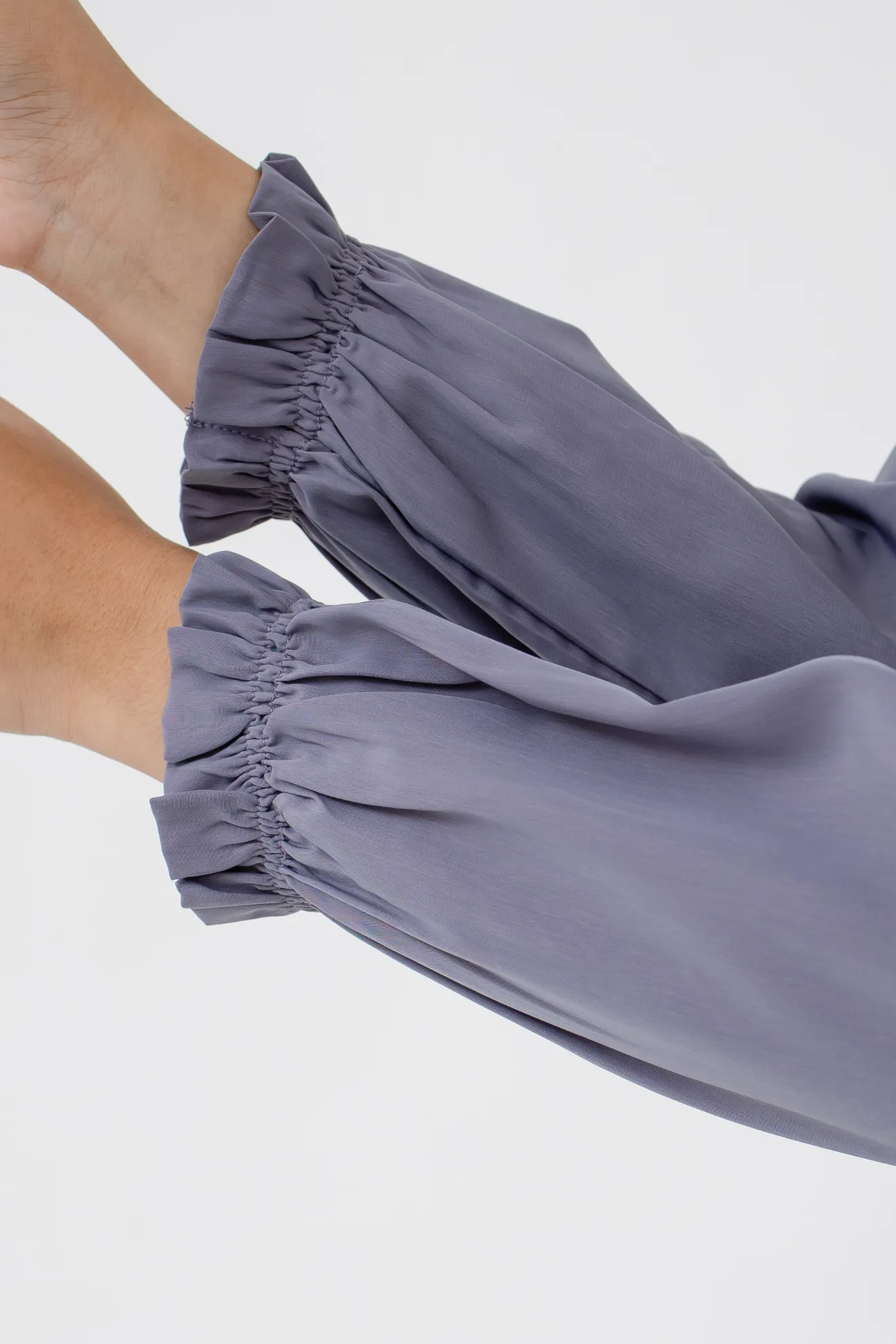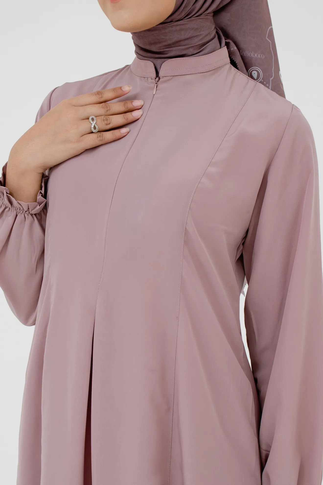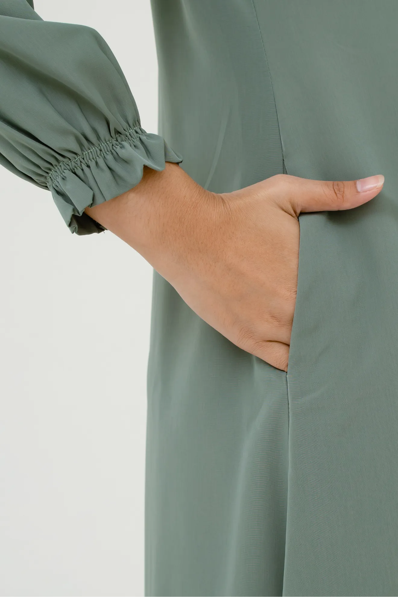 Kerah ShanghaiZipper Depan Lengan Variasi Kerut Lipit Hadap Saku Sisi Potongan Slim Fit