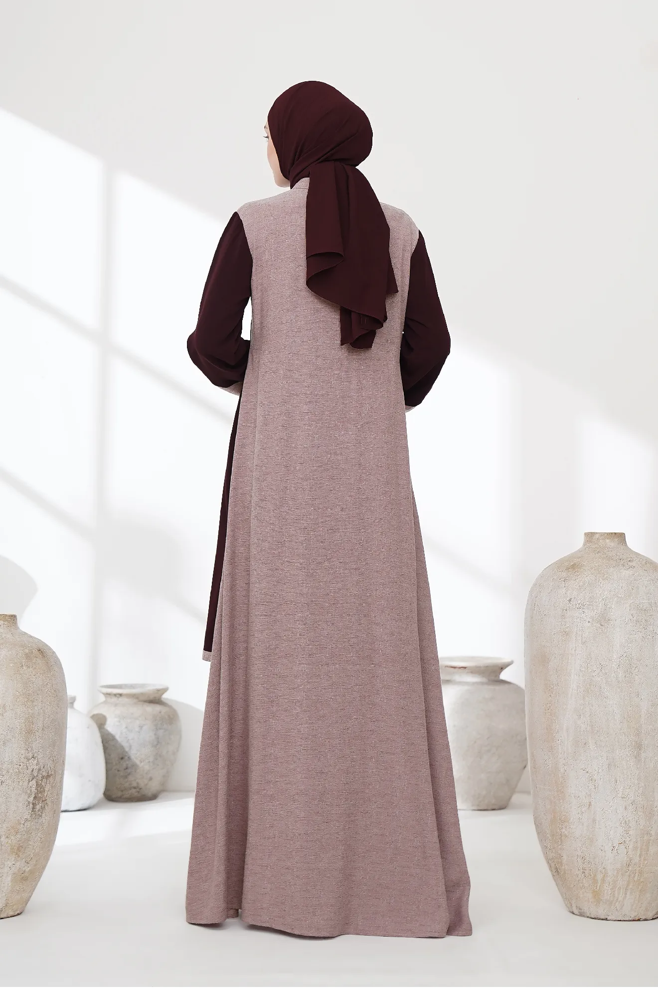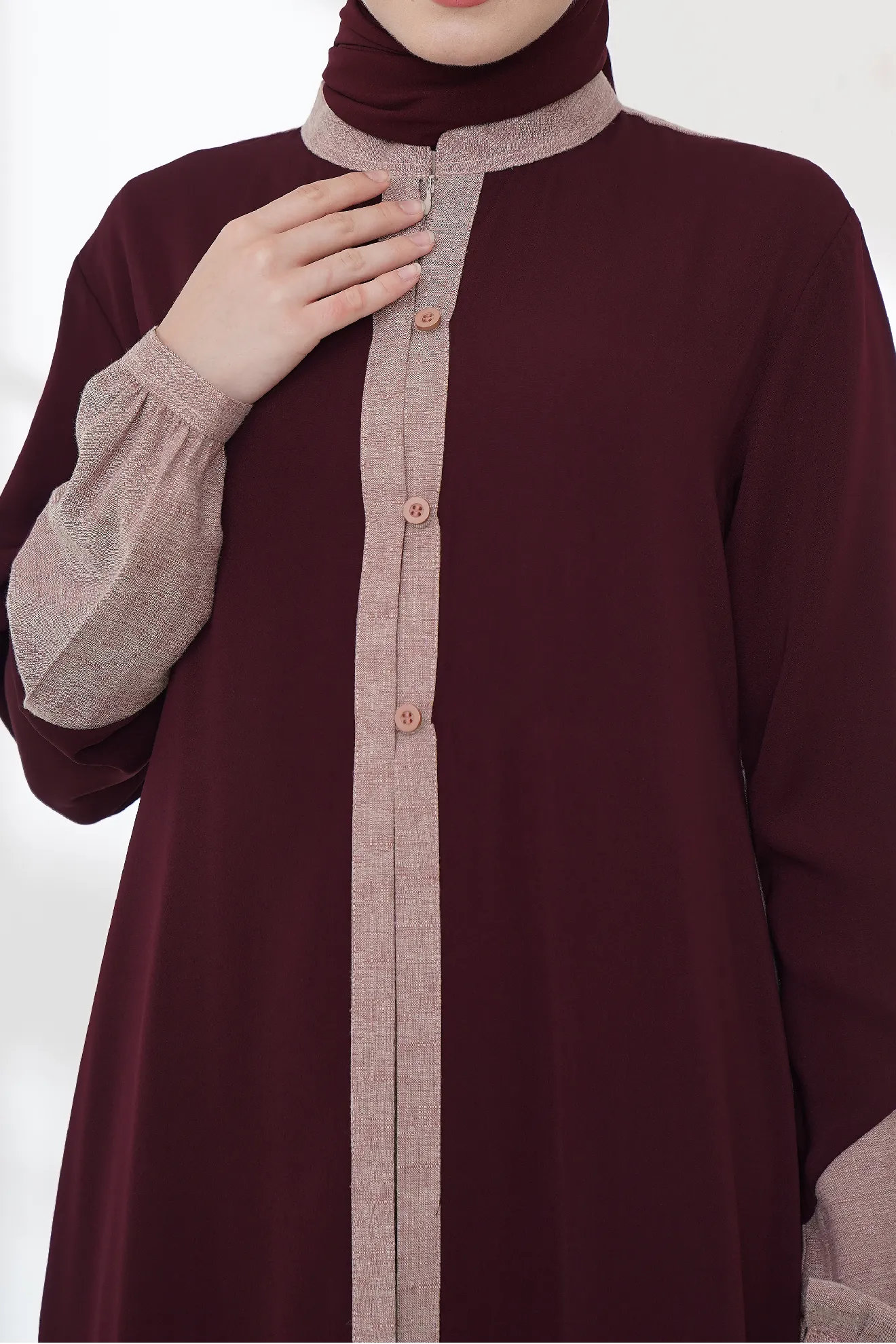 Gamis ini memakai bahan yaitu bahan Micra Rayon mix Venavein, Kombinasi dari kedua bahan ini menghasilkan tekstur yang lembut dan halus. Bahan ini dirancang untuk menawarkan kenyamanan yang baik, dengan sirkulasi udara yang optimal dan perasaan lembut di kulit, membuatnya cocok untuk pakaian formal atau semi-formal.