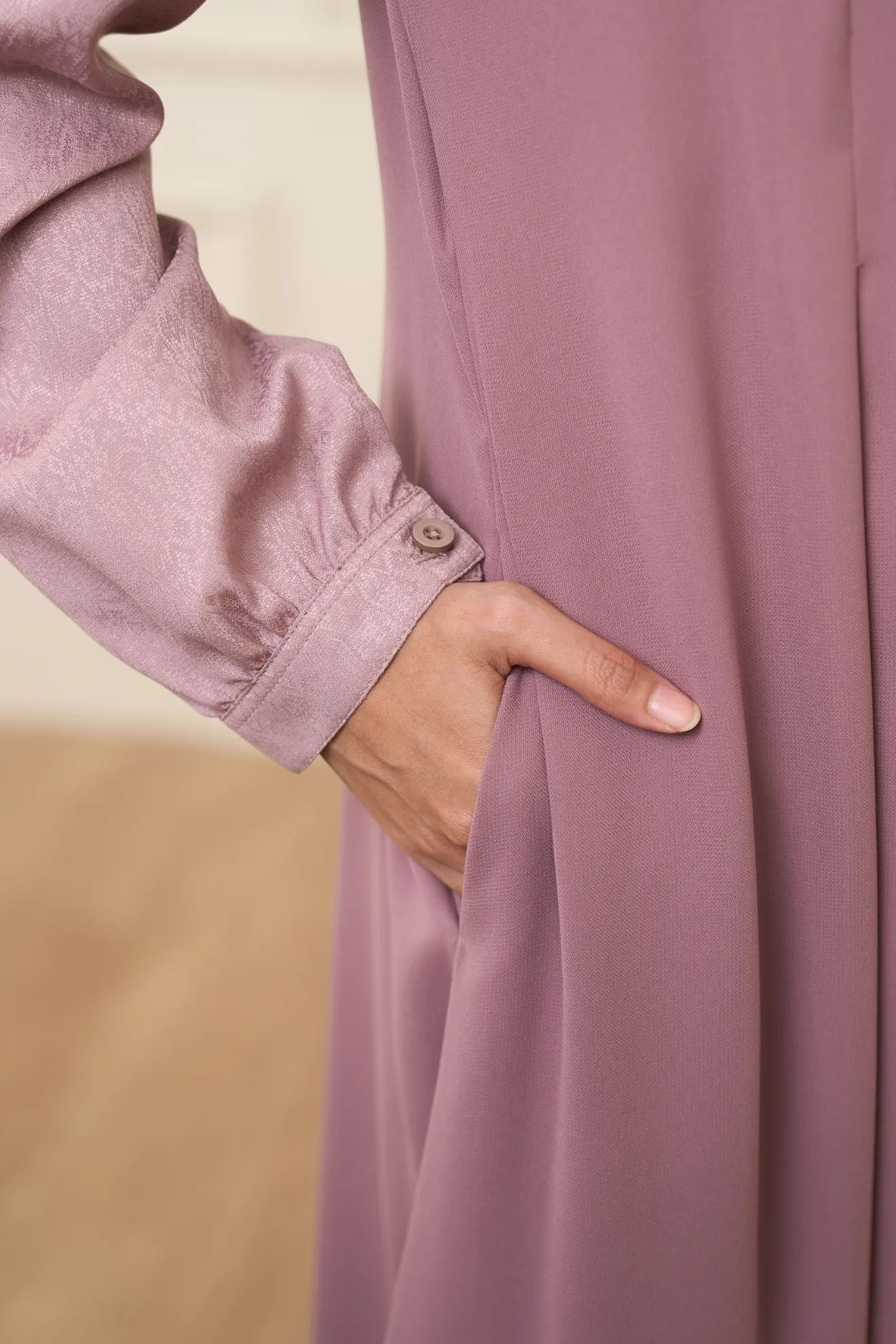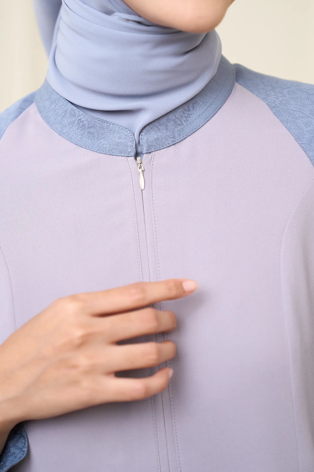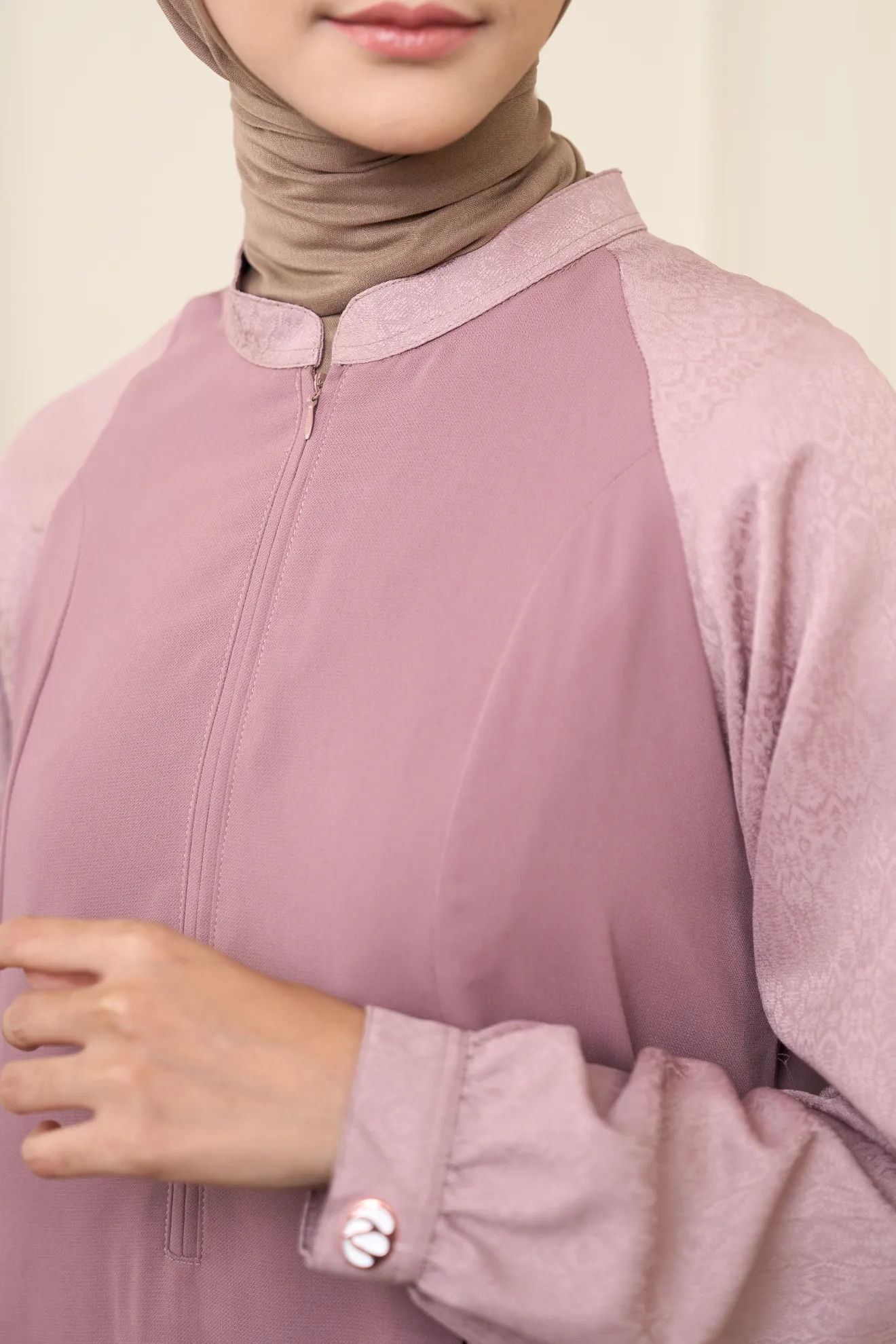 Kerah ShanghaiLengan Manset Kancing Zipper DepanSaku Sisi Variasi Lipit Hadap di Pinggang