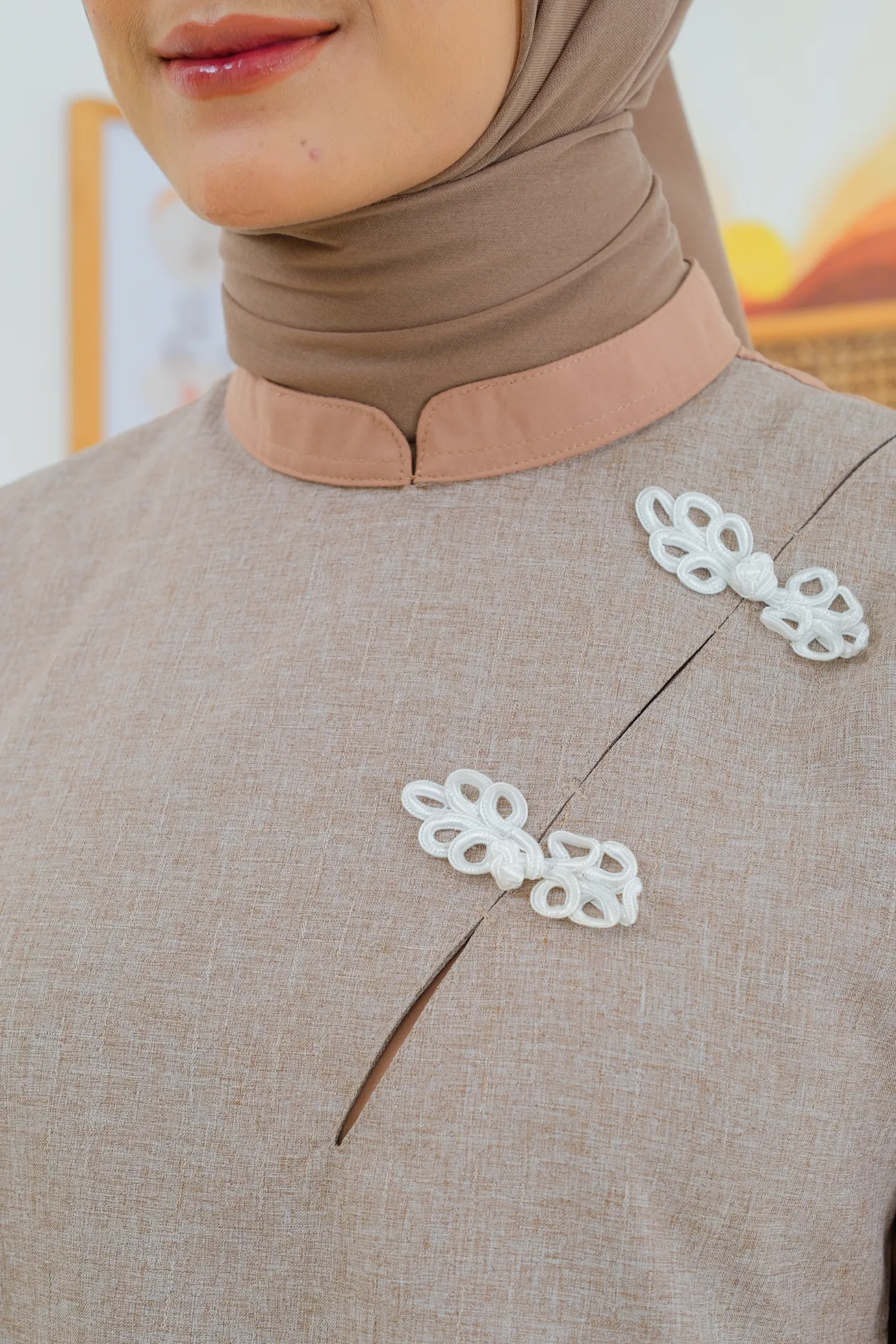 Kerah Shanghai Variasi Kancing CinaVariasi Layer Saku Sisi Zipper Belakang