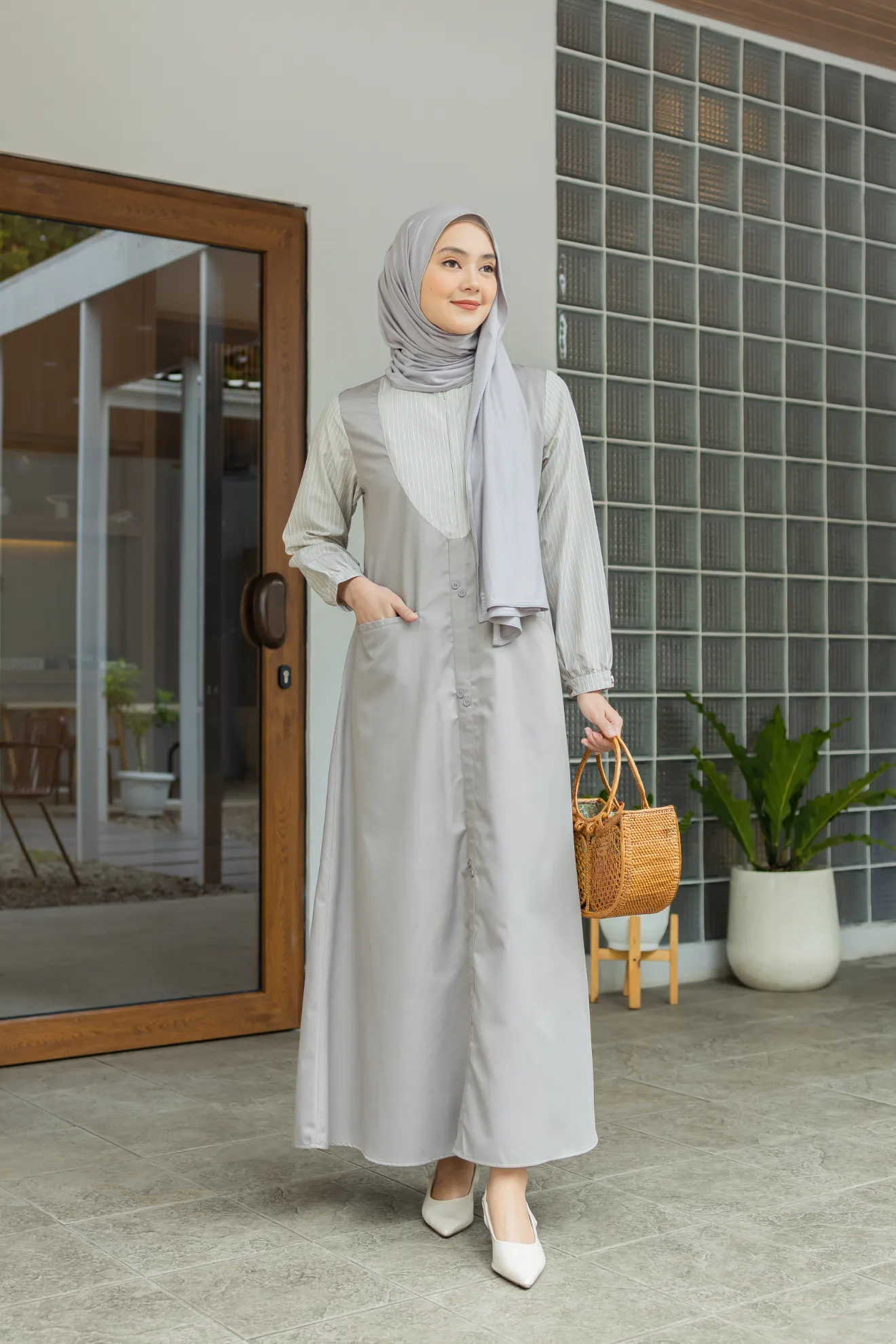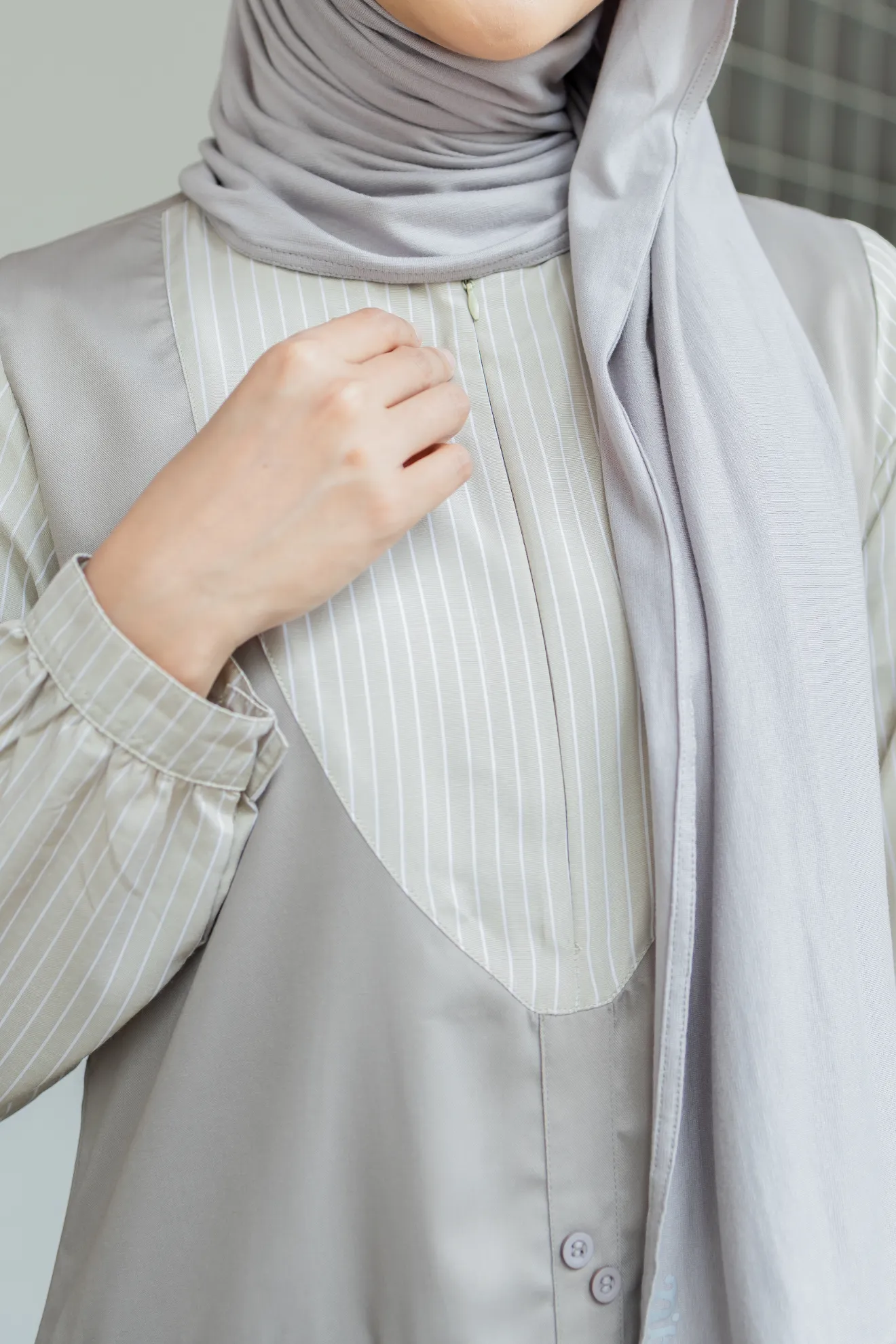Kerah ShanghaiZipper DepanKancing HiasSaku Depan Kanan KiriLengan Manset Kancing