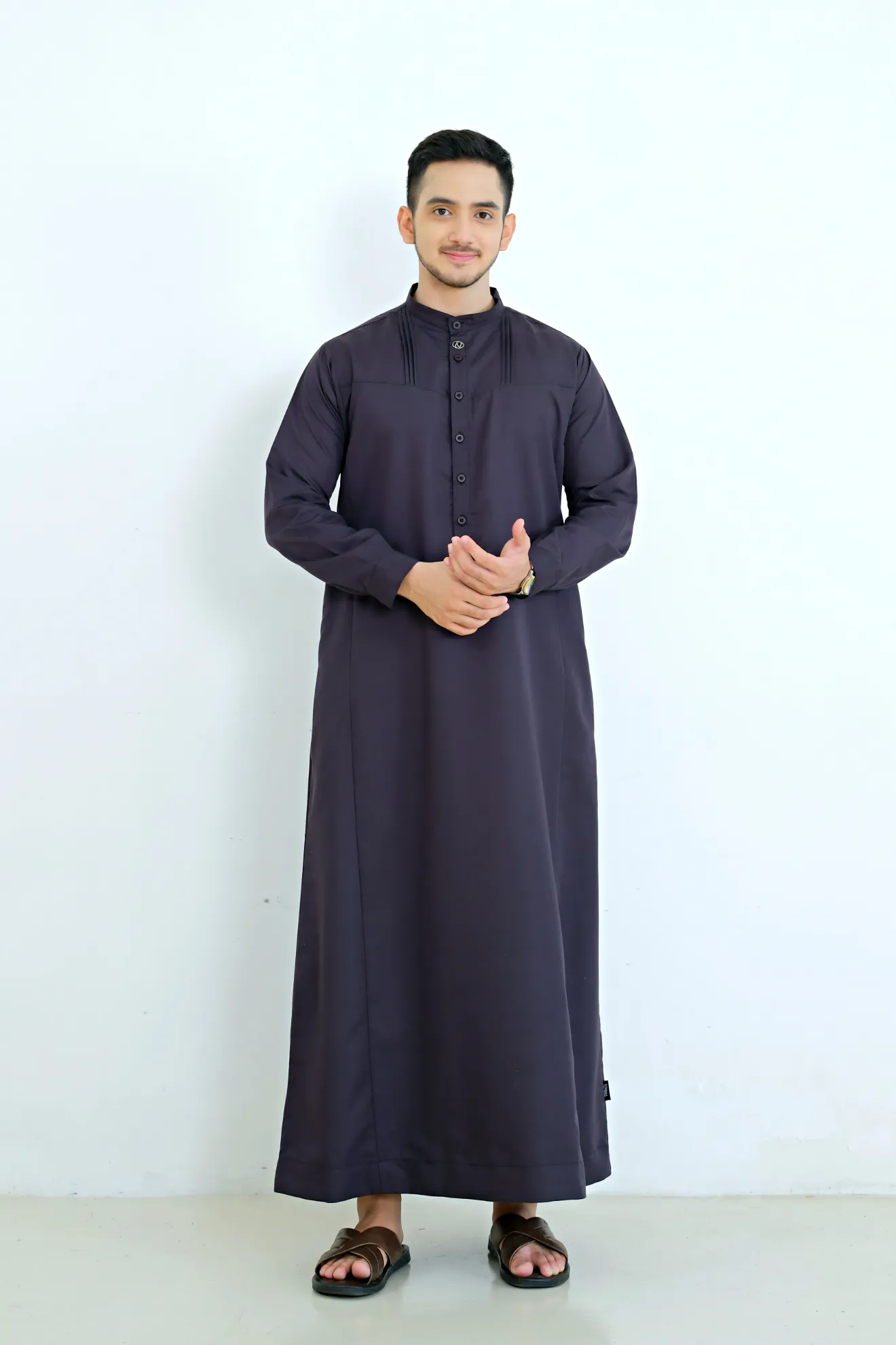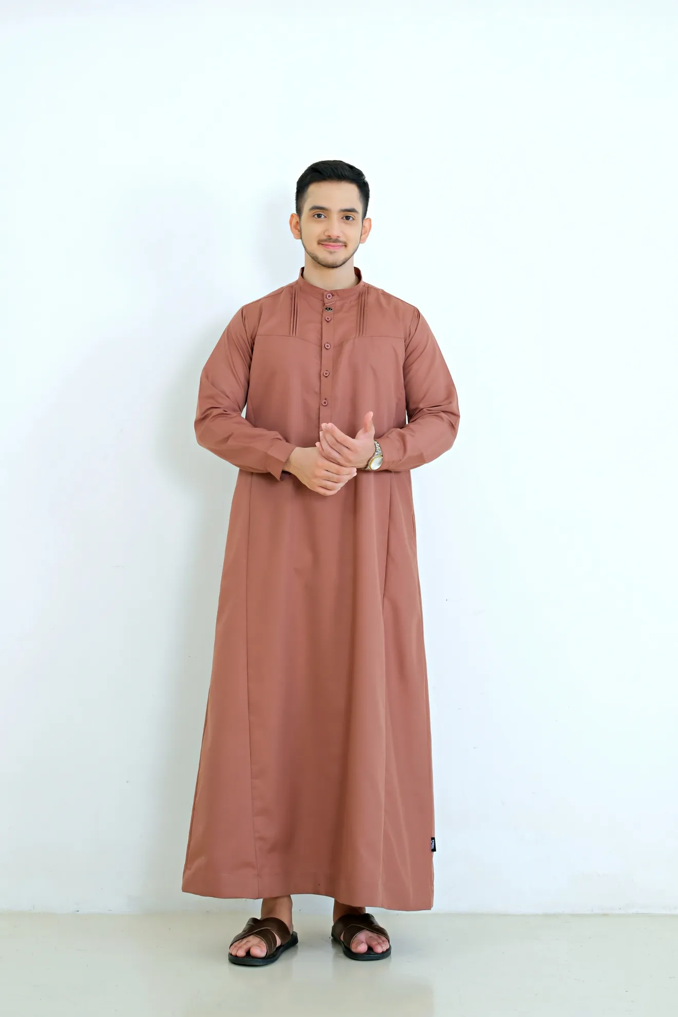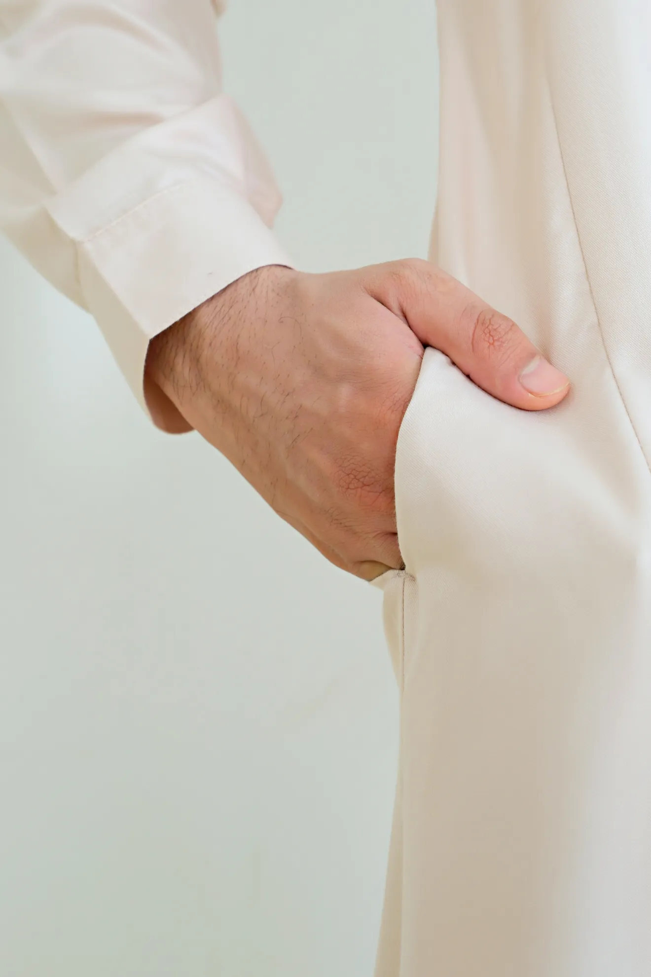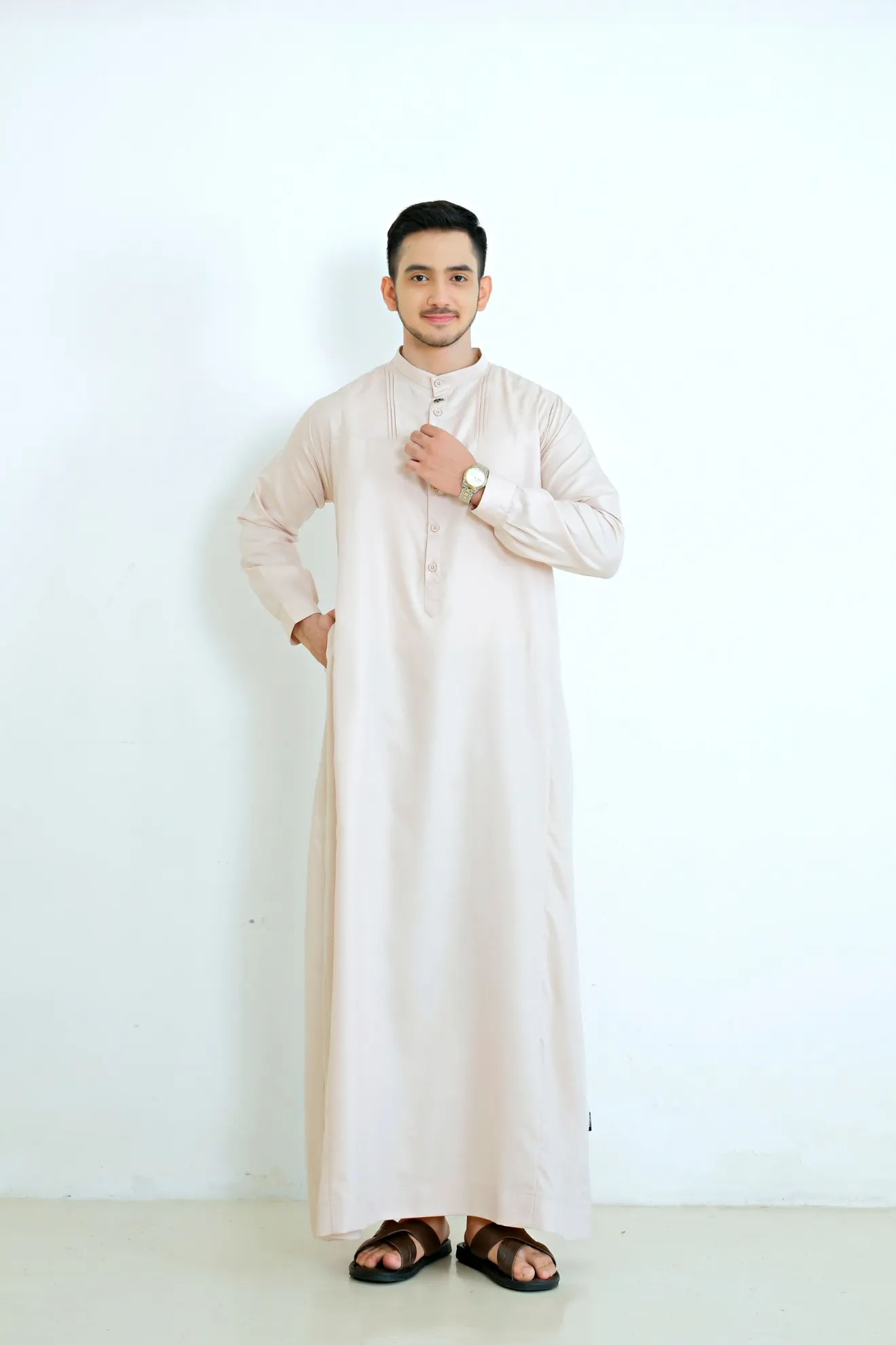 Kerah ShanghaiLengan Manset Kancing Saku SisiVariasi Opnaisel Bukaan Depan Kancing