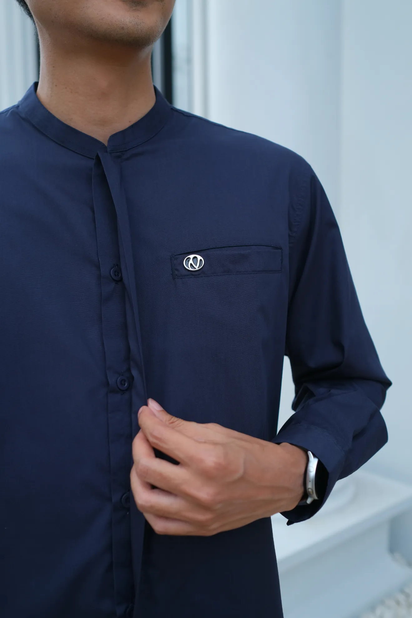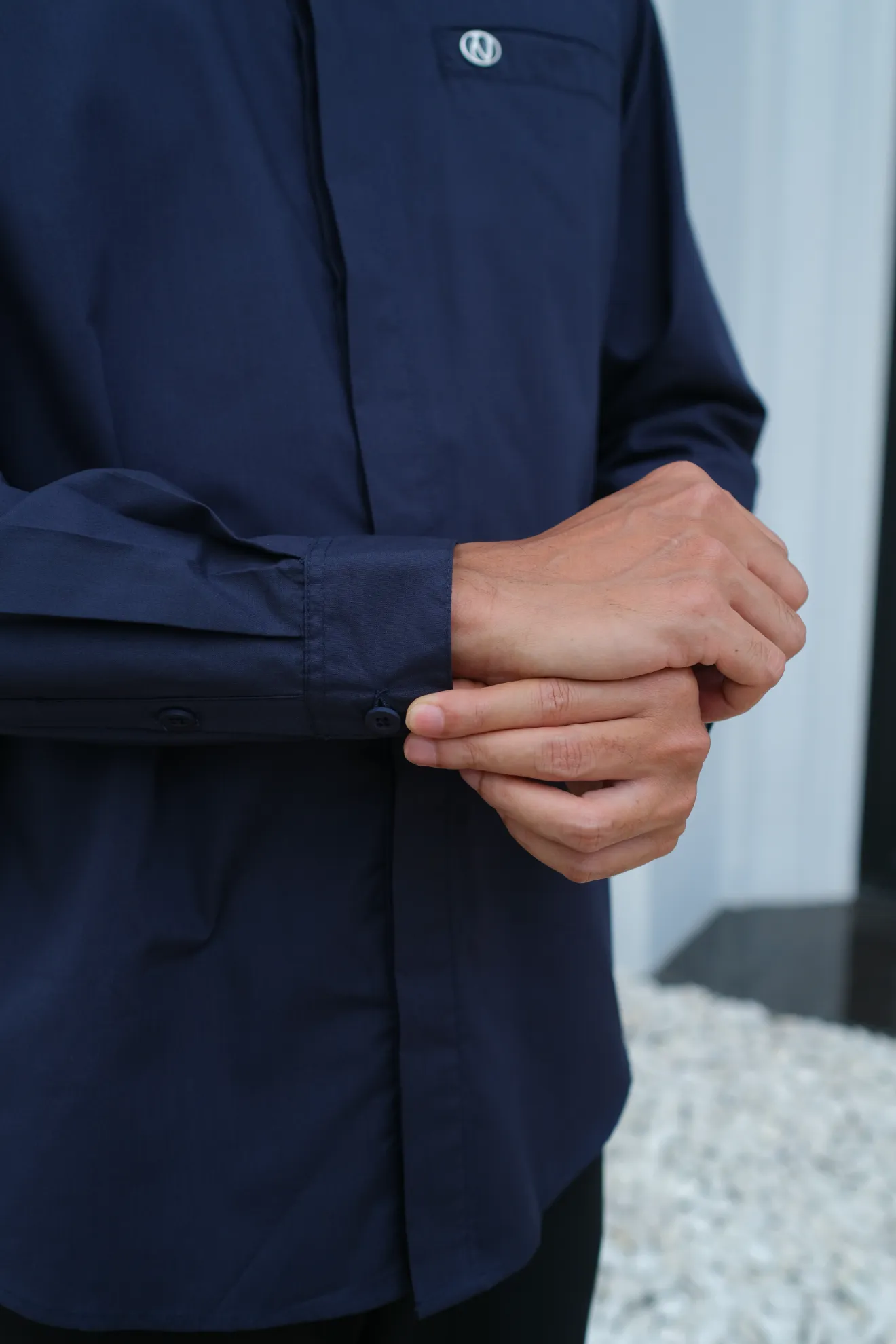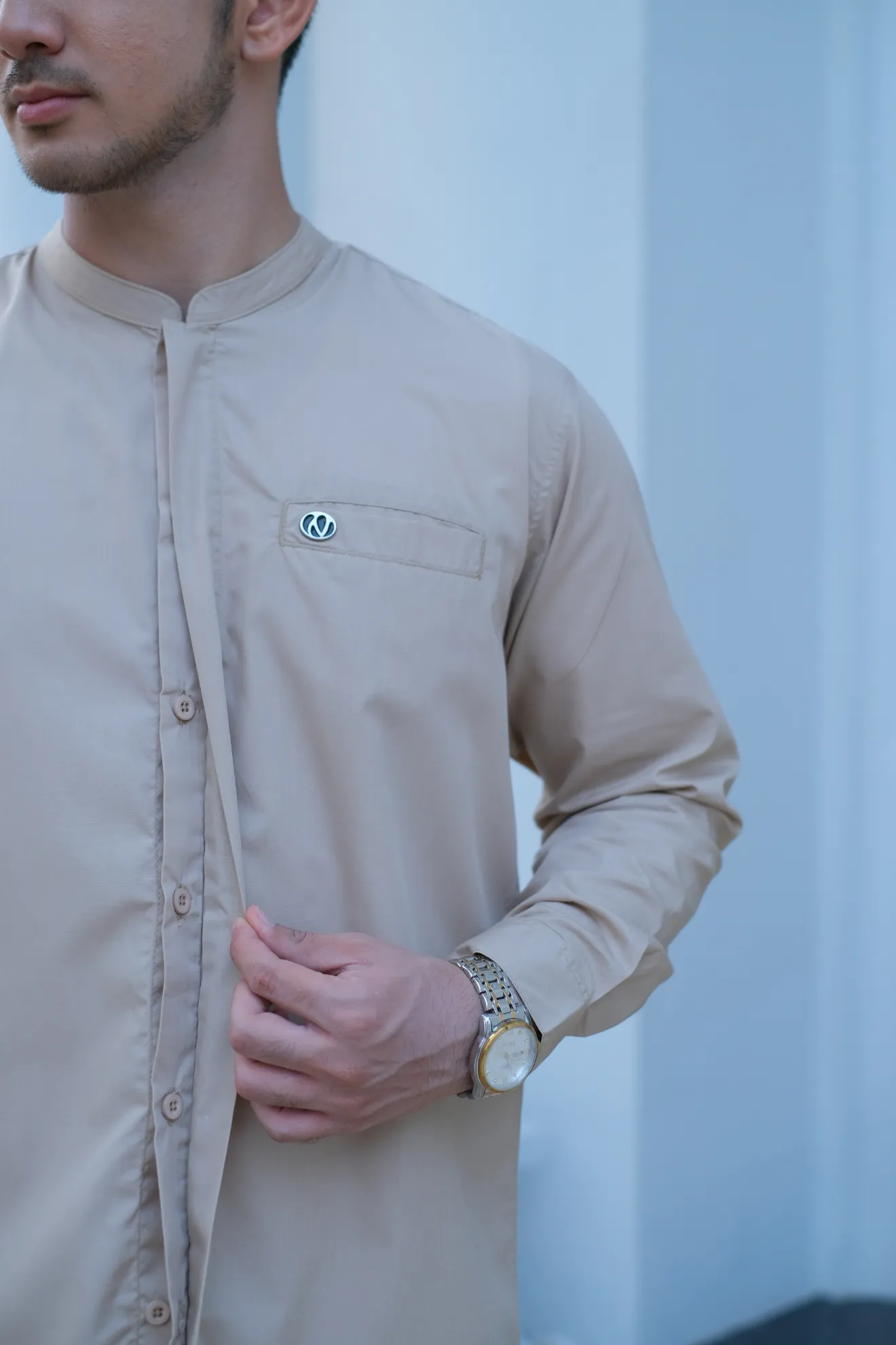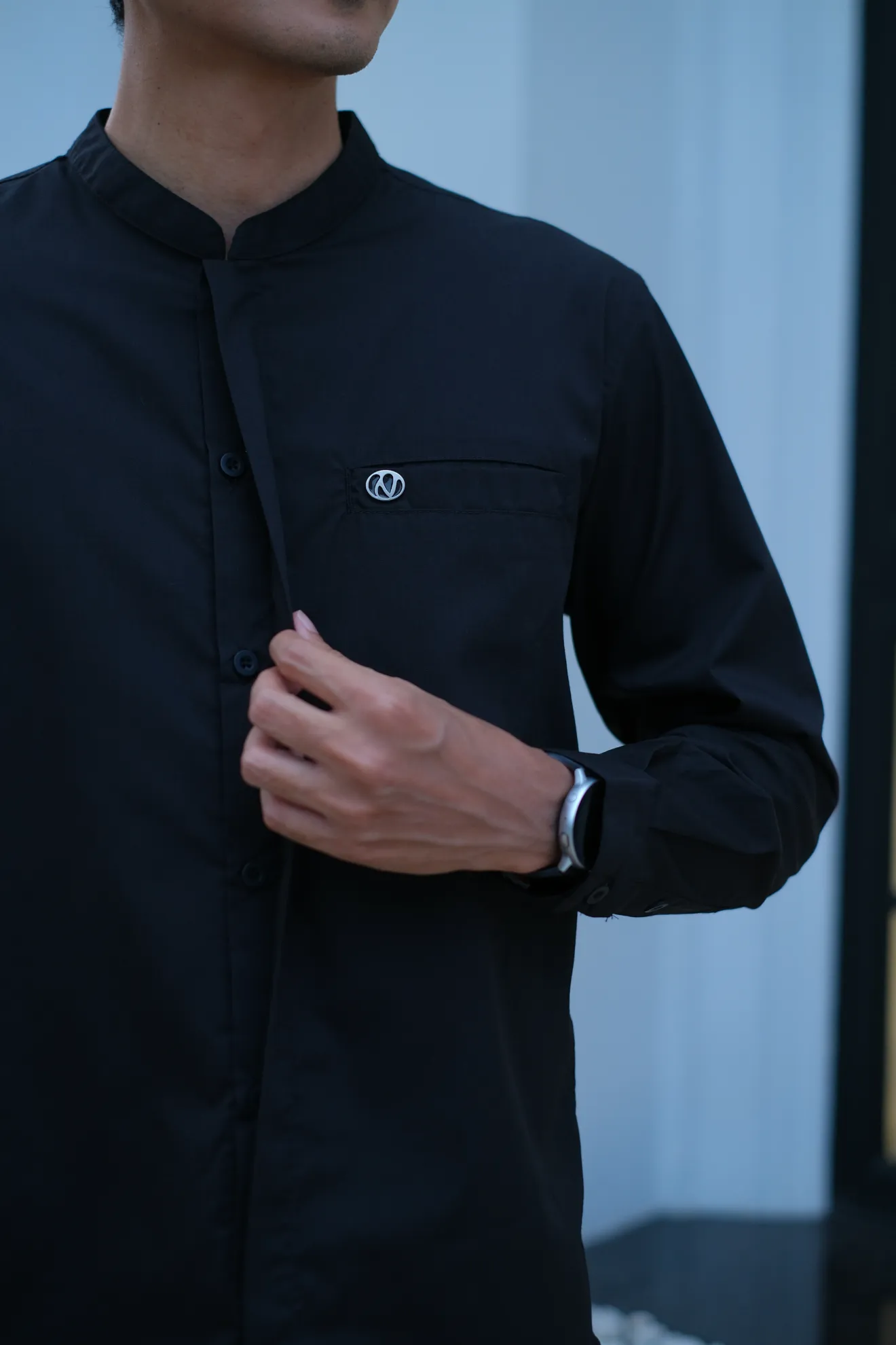 Kerah ShanghaiFull KancingHidden ButtonSaku DepanLengan Manset Kancing