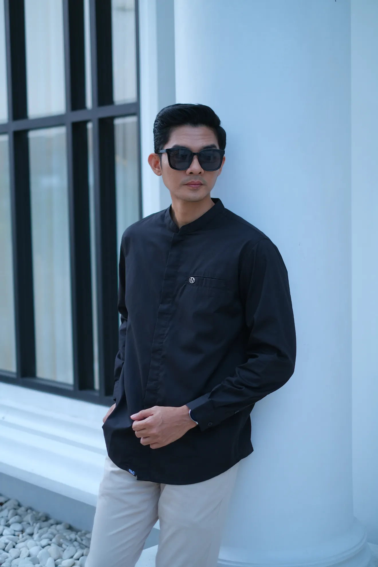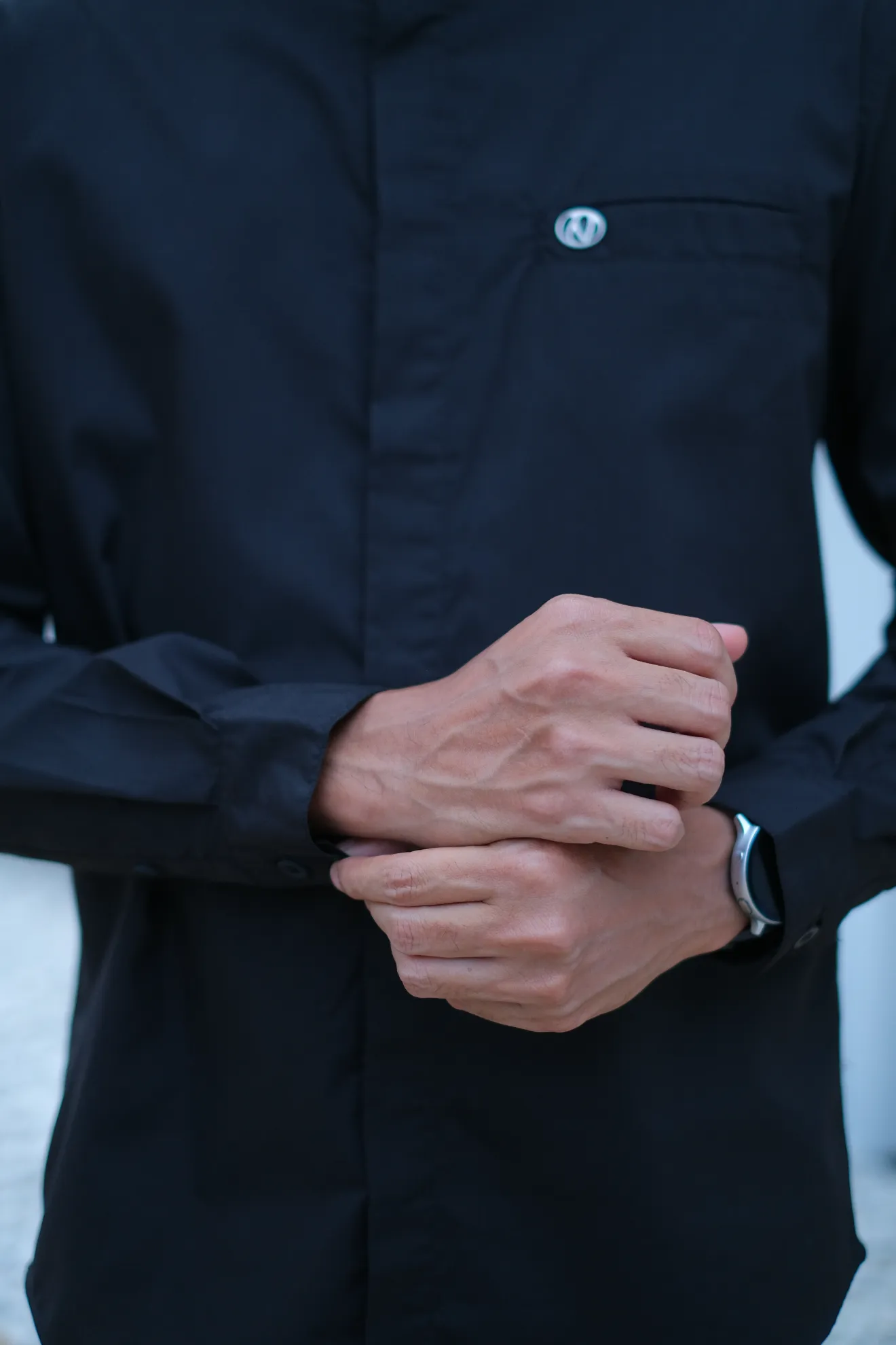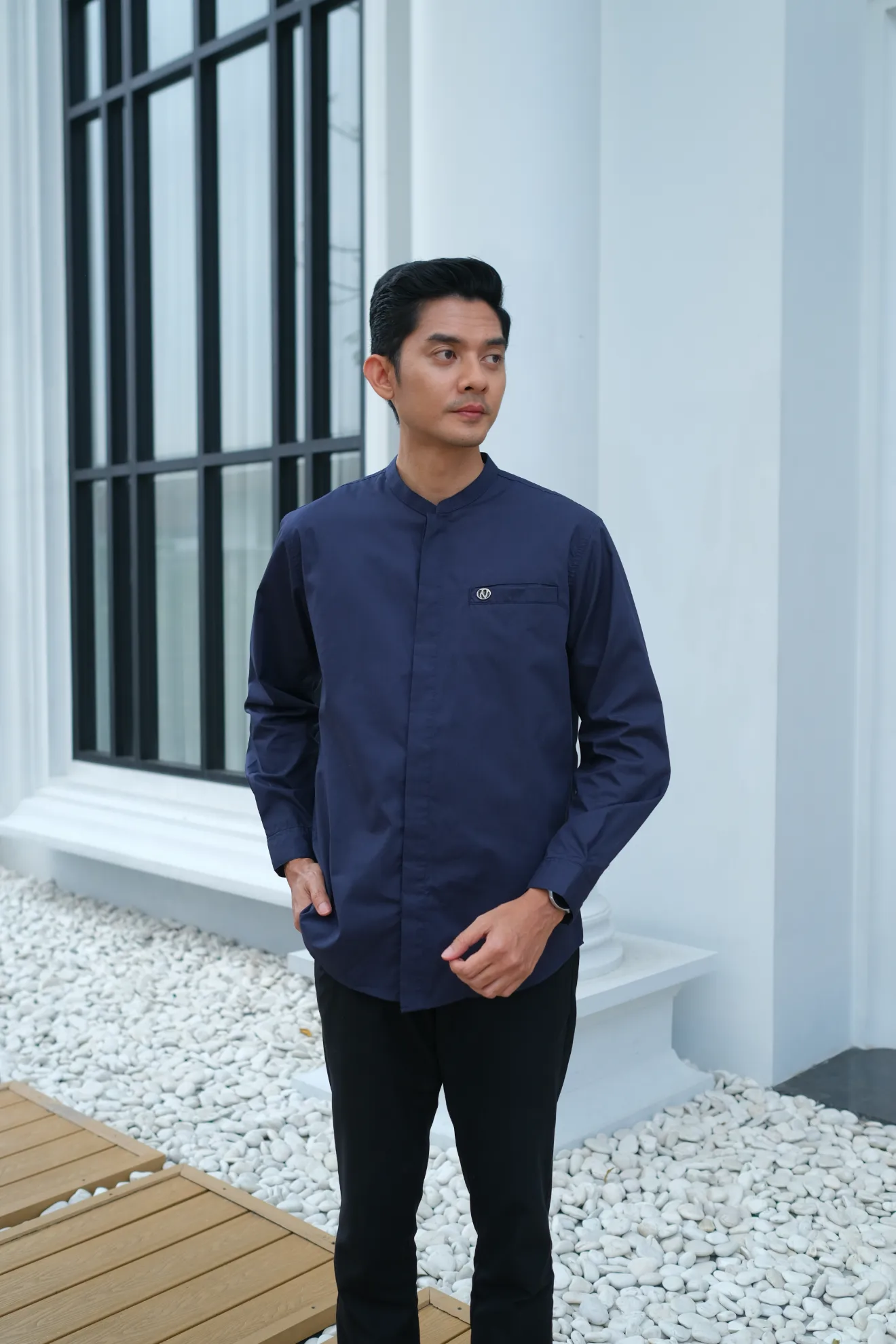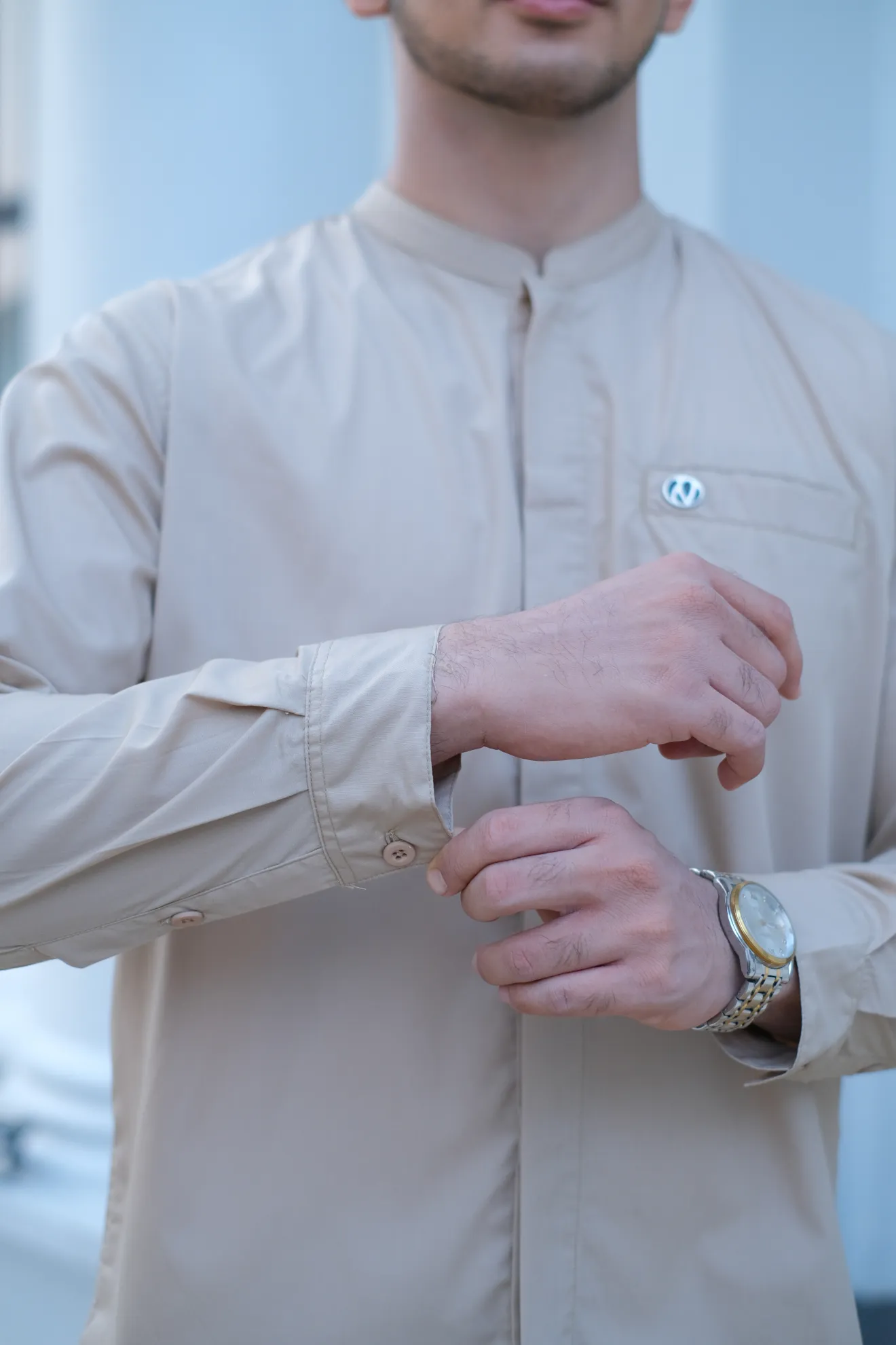Kerah ShanghaiFull KancingHidden ButtonSaku DepanLengan Manset Kancing